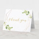 Custom-designed wedding thank you cards featuring modern stylish geometric gold frames and watercolor greenery design. Personalize message or delete the text box for a blank handwriting area.