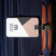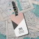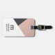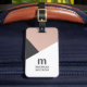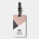 Modern customisable luggage tag design with bold monogram and geometric background.