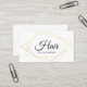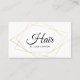 Modern business card for hair stylist features a (not real) gold geometric centerpiece with chic calligraphy.