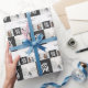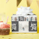 Modern geometric joyful typography multi photo christmas gift wrap. minimal monochrome black and white graphic design. Part of a holiday collection.