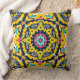 Modern geometric mandala yellow navy pattern cushion