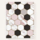 This pretty geometric pattern is made out of marble hexagons in rose pink, gold, black, and white. It adds a feminine, sophisticated touch to your home décor.
