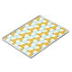 Trendy geometric pattern with mint blue, golden yellow and white triangles.