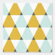 Stylish peel and stick wallpaper with a geometric pattern of mint blue, golden yellow, and white triangles—perfect for adding a modern touch to any room.