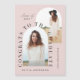 Geometric modern typography elegant pastel natural 2 photo arch graduation announcement card. pink