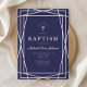 Modern Geometric Navy Blue Boy Baptism Silver
