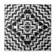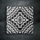 This ceramic tile features a captivating geometric design that is both modern and timeless. Its design is chraacterised by an intricate black and white pattern. At the centre of the tile is a star-like figure, which is surrounded by multiple layers of geometric shapes including diamonds, triangles, and squares. The pattern is symmetrical, with complex shapes and lines creating an optical illusion effect.