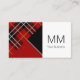 Modern Geometric Red Tartan Plaid Pattern Themed Personalised business cards from Ricaso - monogrammed style text in a delicate fashionable font
