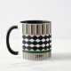 🎨 Features a striking black-and-white geometric pattern layered with soft vertical stripes in muted green and blush tones for a balanced, contemporary look.