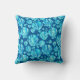 Throw pillow in a modern geometric, mosaic seashell pattern in shades of aqua, ocean blue and white on a deep navy blue / indigo background