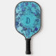 Modern geometric shapes with monogram in blue with a bit of glitter - cool Pickleball Paddle for yourself or a unique gift! Change the monogram or write your text in the box.