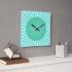Modern Geometric Sunburst - Aqua and Seafoam Green Square Wall Clock