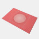 Doormat in a Mid-Century Modern abstract sunburst with a silky, gradient effect - soft coral pink on a deep coral pink background