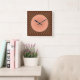 Modern Geometric Sunburst - Peach and Brown Square Wall Clock