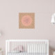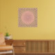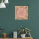 Mid-Century Modern abstract sunburst with a silky, gradient effect - soft peach / apricot on a camel tan background, accented with shades of gold