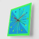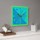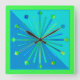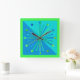 Modern Geometric Sunburst, Turquoise & Lime Green Square Wall Clock
