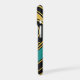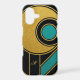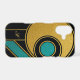 A sleek and artistic case featuring intersecting geometric shapes in teal, mustard, beige, and cream, outlined with elegant gold lines and a refined monogram, a perfect mix of modern and luxurious style.