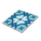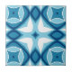 Ceramic tile in a four-way, Mid-Century Modern, Geometric tile pattern in shades of light to dark denim blue and white