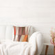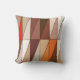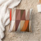 Throw pillow in a a Mid-Century Modern geometric grid of triangles in earth colours of beige, taupe, chocolate brown, gold and cinnamon red