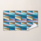Towel set in a Mid-Century Modern geometric grid of triangles in sea glass colours of cerulean blue, turquoise, aqua, coffee brown, beige and soft violet
