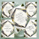 Welcome to our shop! Introducing our Elegant White and Purple Flowers on Marble Wedding Invitation, the perfect blend of sophistication and natural beauty. This exquisite design features elegant petite flower buds delicately arranged with lush green leaves, all encased in a gorgeous geometric frame boasting shades of green, gold, and yellow. Against a creamy background, the elegant script typography brings a touch of class to your invitation suite.