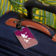 ...to identify your belongings... White map of the world on a wine background colour, personalised with your name and additional informations.