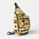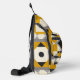 Carry your essentials in comfort and style with this modern geometric sling bag. Its unique yellow and grey pattern adds a contemporary touch to any outfit.