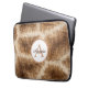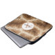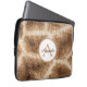 A modern monogram and nametag on a giraffe pattern on an laptop sleeve.