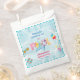Personalise this Girl's Pool Party Favour Bag and add a Splish Splash touch to your precious child's party favours. The colourful flip flops, popsicle, modern sunglasses, summer cold drink and Hot Pink lettering, give this favour bag a fun look. Set against an inviting blue water background, this party favour bag is perfect for a Swimming Pool Birthday Party thank you gift.