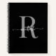 Modern Girly Black Grey Script Monogram Name Notebook