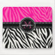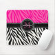 Modern Girly Black Pink Zebra Print Personalised Mouse Pad