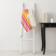 A bright pop of colour in groovy curved stripes adds a happy upbeat look to your bedroom, dorm or living space. Girly vibrant colours include bright yellow, orange, hot pink, medium pink and coral on a white background. The colours brighten up the darkest days and nights with style. Personalise the text template with your monogram initial.