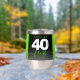 Celebrate the big four oh in style with this stainless steel stemless wine tumbler, which features striking black, white, and bright green block and handwritten lettering set on a rich black to smoky grey background. Reverse shows identical design.