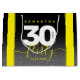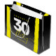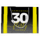 Celebrate the big three oh with this stylish modern design, which features striking black, white, and bright yellow block and handwritten lettering set on a rich black to smoky grey background. Reverse shows identical design.