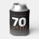 Celebrate the big seven oh in style with this modern design, which features striking black, white, and copper block and handwritten lettering set on a rich black to smoky grey background. Reverse shows identical design.