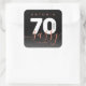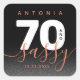Celebrate the big seven oh with this stylish modern design, which features striking black, white, and copper block and handwritten lettering set on a rich black to smoky grey background.