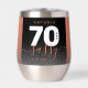 Celebrate the big seven oh in style with this stainless steel stemless wine tumbler, which features striking black, white, and copper block and handwritten lettering set on glittery copper, rich black, and smoky grey backgrounds. Reverse shows identical design.