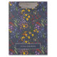 Modern girly floral colourful and navy blue personalised initial and name simple classy clip board design.