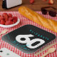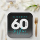 Celebrate the big six oh with this stylish modern design, which features striking black, white, and ice blue block and handwritten lettering set on a rich black to smoky grey background.