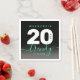 Celebrate the big two oh in style with this modern design, which features striking black, white, and mint green block and handwritten lettering set on a rich black to smoky grey background.