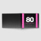 Celebrate the big eight oh with this stylish modern design, which features striking block and handwritten lettering set on alternating rich-black-to-smoky-grey and pink backgrounds.