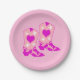 Modern Girly Pink Cowgirl Western Boots Paper Plate