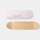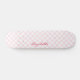 Create your own custom, personalised, modern, cool, stylish, girly, light pink and white checks checkers chequered chequerboard geometric pattern, classy elegant dark pink typography script, best quality hard-rock maple competition shaped skateboard deck. To customise, simply type in your name / monogram / initials. While you add / design, you'll be able to see a preview of your creation, throughout. A cool skateboard deck, makes a great custom gift for birthday, graduation, christmas, holidays, new years, and more, for your loved ones, kids, daughter, sister, family and friends.