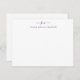 Elegant Two Monogram Initial Girly Script Swash Black Personalised Classic Purple Violet Note Card