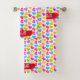 Modern Girly Vibrant Doodled Hearts Pattern Name Bath Towel Set