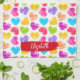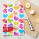 Modern Girly Vibrant Doodled Hearts Pattern Name Tea Towel