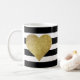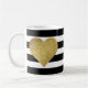 Modern Glam Black Stripes Metallic Gold Heart Coffee Mug