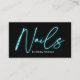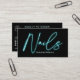 Modern glam blue neon nails technician manicurist script logo qr code business card, add your social media, logo and qr code,