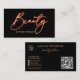 Modern glam orange neon beauty technician manicurist script logo qr code business card, add your social media, logo and qr code,