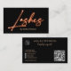 Modern glam orange neon lashes script logo qr code business card